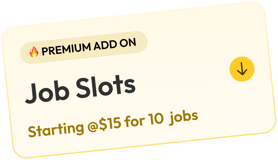 Job slots are available starting at $10 for 10 jobs. Each job slot allows you to post one active job opening. You can purchase additional job slots as your hiring needs grow.